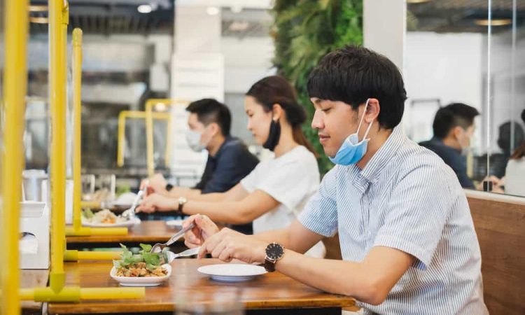 Kebanyakan restoran mungkin akan meminta pengunjung datang menggunakan masker dan melepasnya sebentar untuk makan dan minum. Lalu, mereka akan memakainya kembali saat berbicara.