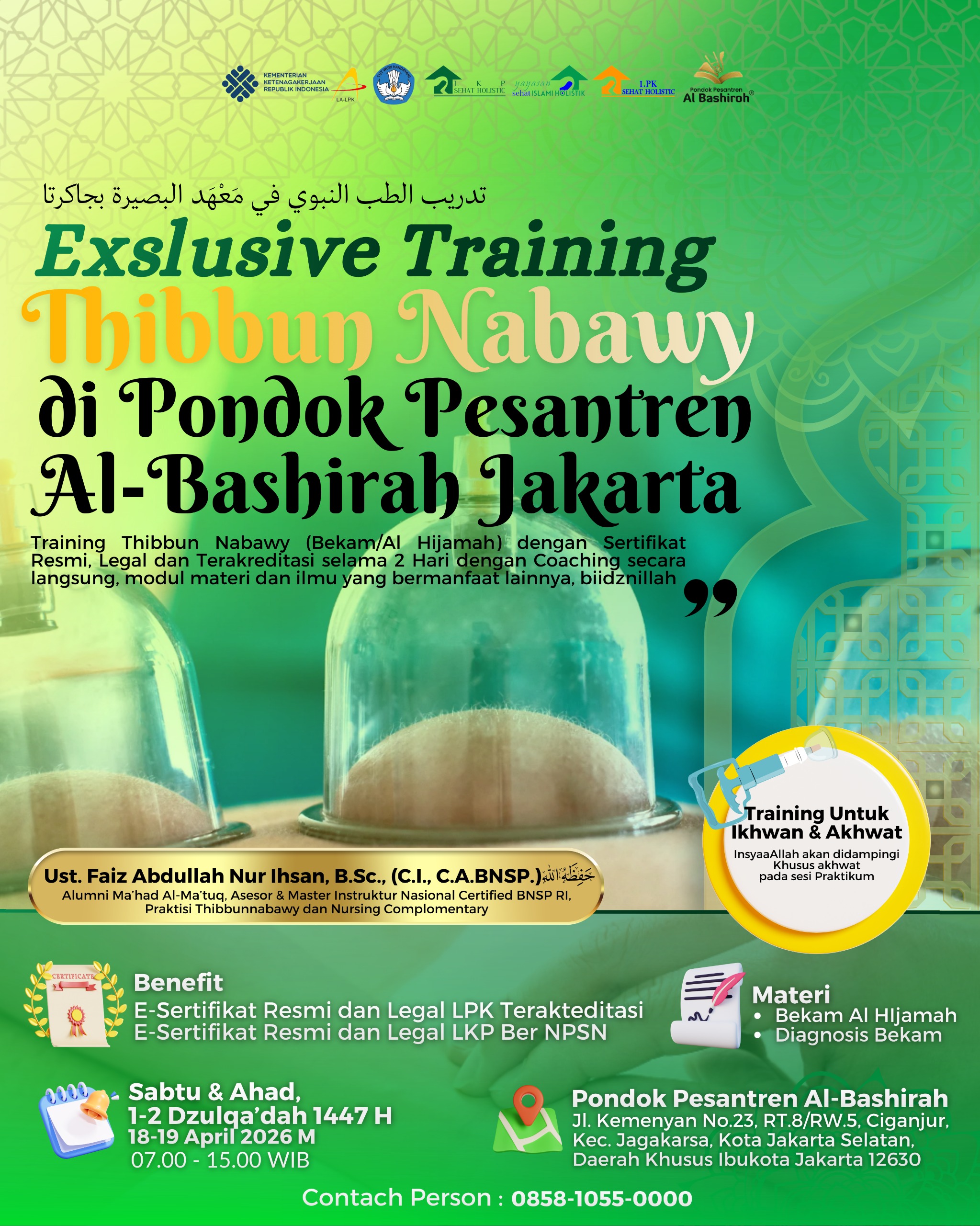 🌿 𝗘𝗫𝗖𝗟𝗨𝗦𝗜𝗩𝗘 𝗧𝗥𝗔𝗜𝗡𝗜𝗡𝗚 𝗧𝗛𝗜𝗕𝗕𝗨𝗡 𝗡𝗔𝗕𝗔𝗪𝗬 — 𝗠𝗘𝗠𝗨𝗟𝗜𝗔𝗞𝗔𝗡 𝗜𝗟𝗠𝗨, 𝗠𝗘𝗡𝗚𝗨𝗔𝗧𝗞𝗔𝗡 𝗔𝗠𝗔𝗡𝗔𝗛 Bismillah… Sebuah kesempatan berharga untuk para thullab dan thalibaat, dalam menapaki jalan ilmu yang tidak hanya bermanfaat untuk diri sendiri, namun juga menjadi jalan pelayanan kepada umat. Training ini bukan sekadar pembelajaran teknik, namun bagian dari meneladani Thibbun Nabawy, menghidupkan sunnah dalam praktik kesehatan yang …