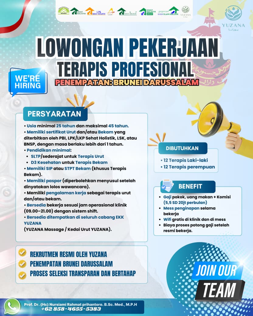 LOWONGAN KERJA TERAPIS PROFESIONAL PENEMPATAN BRUNEI DARUSSALAM